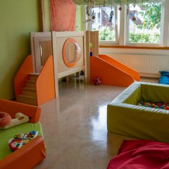 Unsere Kita bietet Platz für maximal 125 Kinder. Es arbeiten 16 Erzieher und Erzieherinnen, 4 Praktikanten und Praktikantinnen sowie eine Hauswirtschaftskraft in unserem Haus