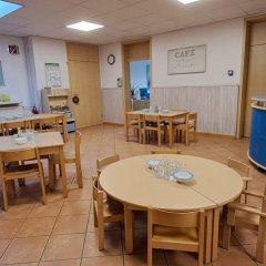 Die Kindertagesstätte Maria Merian hat bis zu 125 Plätze für Kinder vom ersten Lebensjahr bis zum Schuleintritt. Zurzeit sind in 13 pädagogische Fachkräfte mit unterschiedlichen Wochenarbeitszeiten in der Kindertagesstätte beschäftigt. Ferner haben wir 3 Mitarbeitende in Ausbildung in unserem Haus (Sozialassistentinnen, Mitarbeitende in der praxisintegrierten Ausbildung) und einen Küchenmeister für den hauswirtschaftlichen Bereich