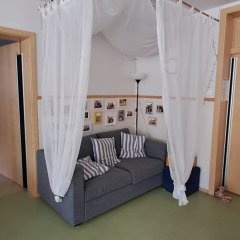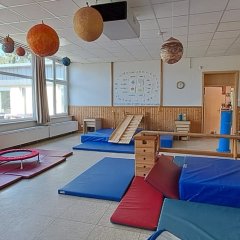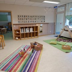 Es gibt in unserem Haus feste Grundstrukturen, im Detail verändern wir uns fortwährend, immer orientierend an den Entwicklungsbedürfnissen der Kinder und der Lebenssituationen der Familien. Folgende Bildungsbereiche stehen den Kindern zurzeit zur Verfügung: Ein „Nest“ ausgerichtet auf die Bedürfnisse unserer jüngsten Kinder, ein Atelier, ein Bereich zum Bauen und Konstruieren, ein Theaterraum, ein „Ruhiger Raum“ zum Entspannen, ein Bewegungsraum, ein Bereich für die ältesten Kinder, ein Bereich zum Forschen und Arbeiten am Computer, mehrere Literacy-Bereiche.