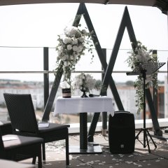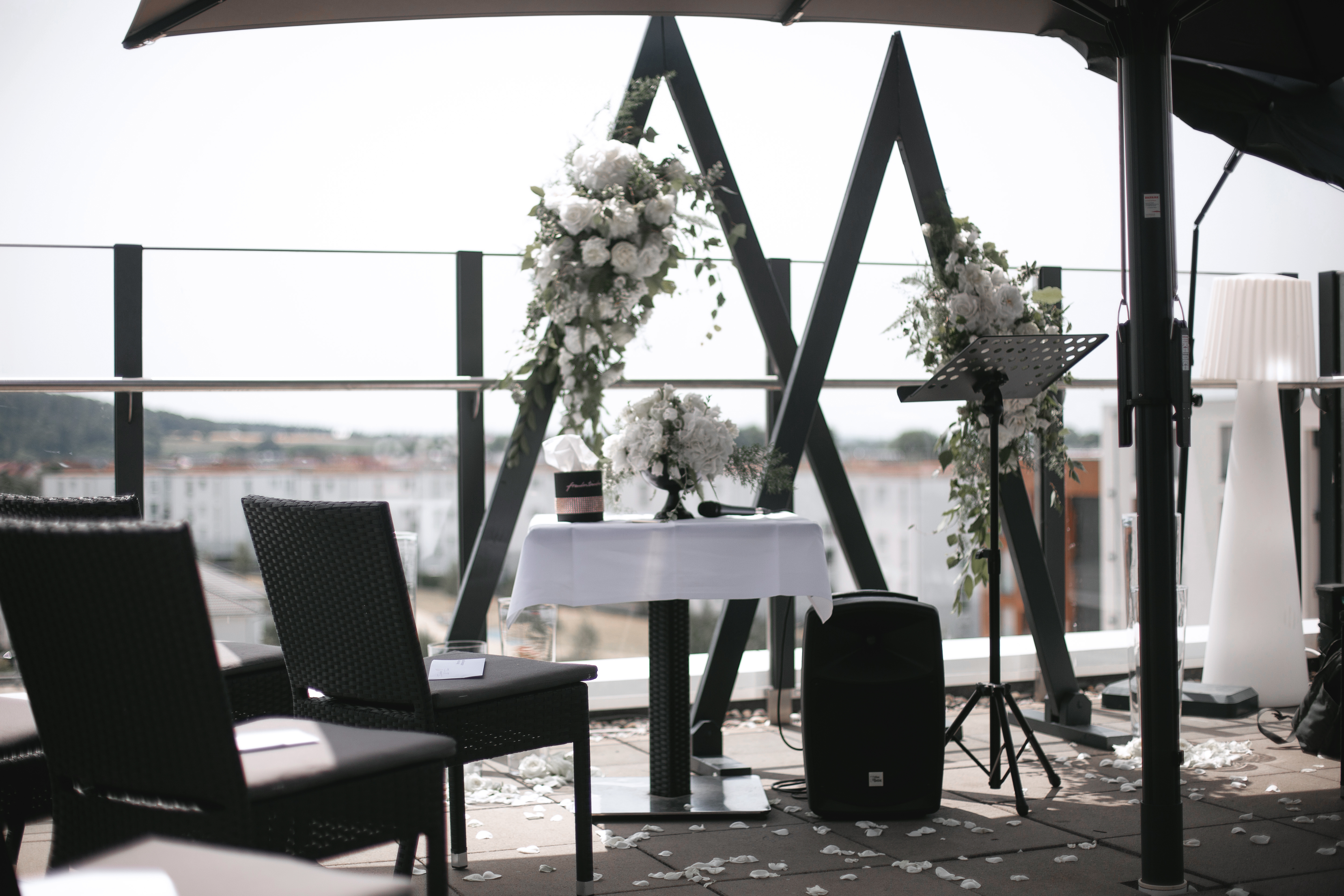 Das Standesamt Nidderau traut Sie gerne über den Dächern von Nidderau in der „Bright Lounge“ des Restaurants „Hannibal.“ Die sonnengeflutete Dachterrasse der „Bright Lounge“ bietet einen einmaligen Ausblick über Nidderau und kann bis zu 120 Personen umfassen. Doch auch für kleinere Trauungen wird dort ein separater Bereich für bis zu 35 Personen zur Verfügung gestellt. Klassisch werden alle Gäste im Halbkreis um den Trautisch platziert, welcher natürlich auch individuell mit Blumenschmuck geschmückt werden kann. Bei schlechtem Wetter findet die Trauung, mit Blick auf den Feldberg, im Innenbereich der „Bright Lounge“ statt. Ein besonderer Vorteil der „Bright Lounge“ ist, dass Sie direkt im Anschluss dort weiterfeiern können. Wurde Ihr Interesse geweckt? Dann setzen Sie sich bitte direkt mit dem Veranstaltungsteam in Verbindung.