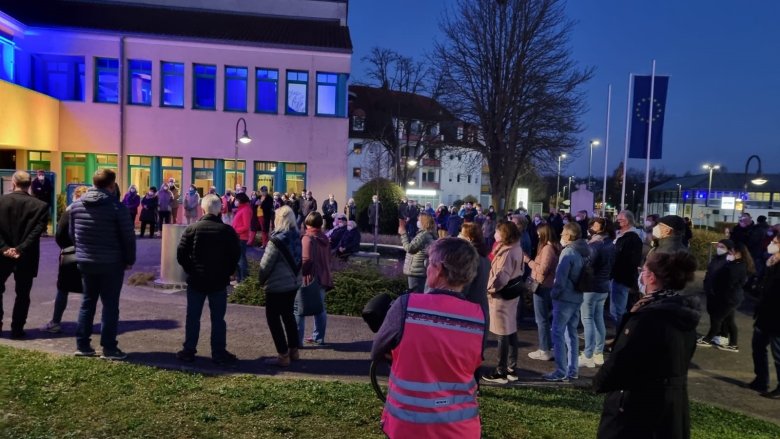Bürgermeister Andreas Bär appellierte in seiner Begrüßung daran, trotz der schrecklichen Ereignisse im Kriegsgebiet stets die Hoffnung aufrecht zu erhalten und sich nicht der Ohnmacht ob der Ereignisse zu ergeben. Nachhaltige Solidarität und Hilfe für die bis zu 6.000 Geflüchteten, die der Main-Kinzig-Kreis in den kommenden Wochen erwartet, seien jetzt das Gebot der Stunde. Beeindruckt zeigte sich der Rathauschef von den vielen Initiativen und Hilfsangeboten, die beweisen, dass in Nidderau die Menschen zusammenstehen, um den betroffenen Ukrainerinnen und Ukrainern zu helfen. Besonders herzlich begrüßte Bär ein Nidderauer Ehepaar, die gemeinsam mit den bei ihnen aus der Ukraine geflohenen Frauen und Kindern an der Mahnwache gekommen waren.