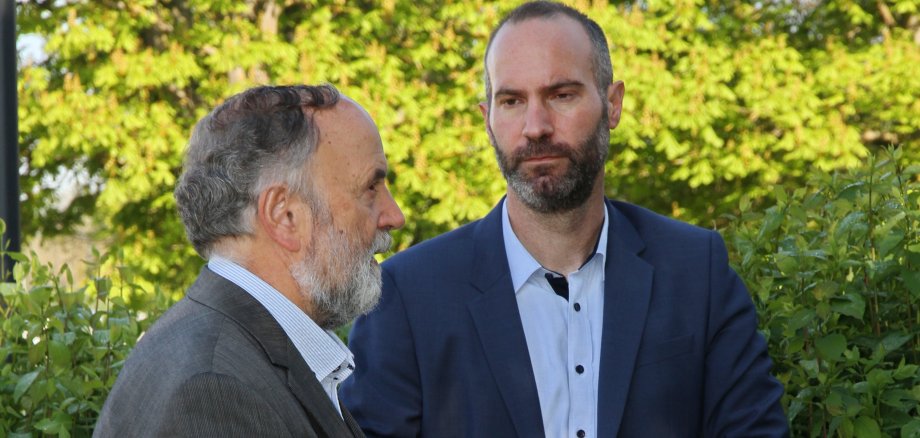 Bürgermeister Andreas Bär und Bürgerstiftungs-Vorsitzender Horst Körzinger: „Wir erinnern und setzen damit ein Zeichen gegen Antisemitismus, Hass, Gewalt und Rassismus“