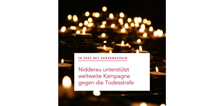 Im vergangenen Jahr erstrahlten am Abend des Aktionstages alle Fenster der Stadtbücherei auf dem Marktplatz Windecken. Aufgrund der Umbauarbeiten am Marktplatz und der Energiekrise setzt die Stadt in diesem Jahr statt glänzender Lichter auf ein stilles Gedenken: So sollen am 30. November einige Kerzen vor dem Rathaus und eine Pressemitteilung auf die Aktion aufmerksam machen. Denn aus Sicht der Stadt Nidderau ist die Todesstrafe Unrecht und kein zulässiges Mittel staatlicher Justiz.
