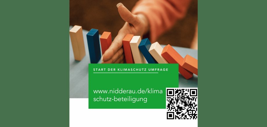 Die Umfrage thematisiert die Schwerpunkte: Klimaschutz allgemein, Mobilität, Leben und Energie. Die Umfrage steht allen Nidderauer Bürgerinnen und Bürgern, Vereinen, Firmen und kommunalen Gremien offen und hat das Ziel das Stimmungsbild in der Stadt zu erfassen und potentielle Themenschwerpunkte im Bereich Klimaschutz herauszuarbeiten. Die Umfrage ist vom 01.12.2022 bis zum 15.01.2023 unter www.nidderau.de/klimaschutz-beteiligung verfügbar.