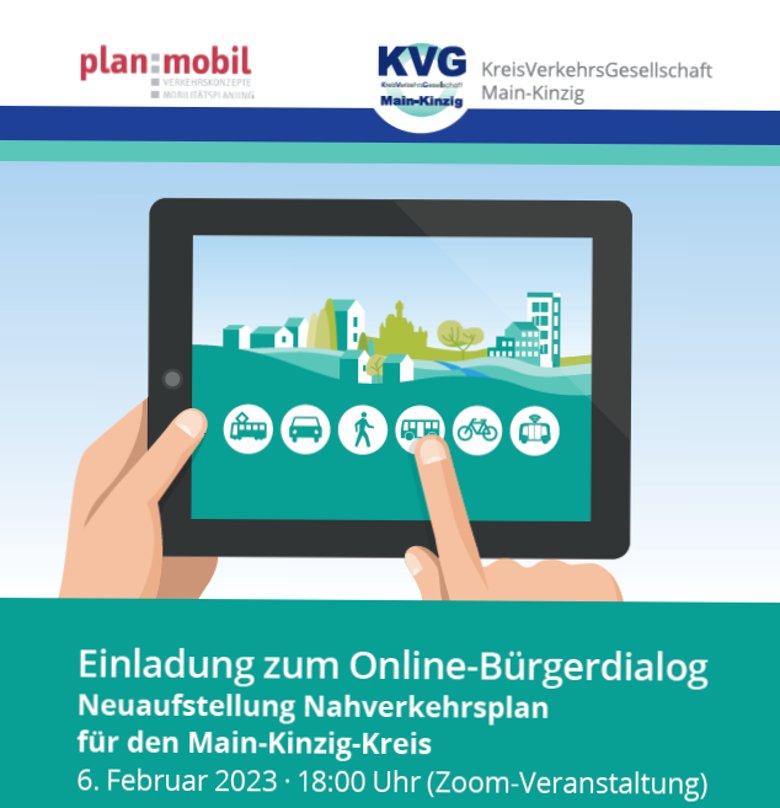 Im Rahmen der Neuaufstellung des Nahverkehrsplans für den Main-Kinzig-Kreis veranstaltet die KreisVerkehrsGesellschaft Main-Kinzig mbH am 6. Februar 2023 um 18:00 Uhr einen Online-Bürgerdialog. Zu diesem möchte die KVG die Bürgerinnen und Bürger des MKK herzlich einladen und würde sich freuen auch Nidderauerinnen und Nidderauer als Teilnehmende begrüßen zu dürfen. Eine Anmeldung ist nicht erforderlich. Alle wichtigen Infos können über die Projekthomepage https://www.mobil-zukunft-mkk.de/ sowie dem beigefügten Online-Flyer entnommen werden. Bei Fragen steht das Projektteam über die E-Mailadresse nvp@kvg-main-kinzig.de zur Verfügung.