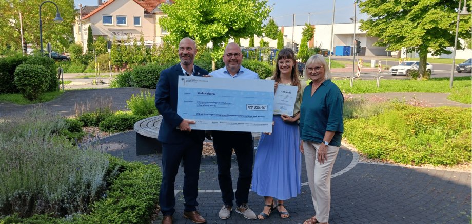 Mit Fördermitteln in Höhe von bis zu 173.000 Euro unterstützt der Bund Klimaanpassung in Nidderau. Die Parlamentarische Staatssekretärin Dr. Bettina Hoffmann (Grüne) überreichte den Förderbescheid am Dienstag im Rathaus an Bürgermeister Andreas Bär und Ersten Stadtrat Rainer Vogel. Die Bundesmittel aus dem Programm „Maßnahmen zur Anpassung an die Folgen des Klimawandels“ dienen für die Anstellung eines Anpassungsmanagenden in Vollzeit für die Erstellung integrierten Klimaanpassungskonzeptes. „Die Stadt Nidderau ist in puncto Klimaschutz und Klimaanpassung schon sehr weit, weiter als viele andere Kommunen. Ich bin froh, dass die Fördermittel helfen, diesen Prozess weiter anzustoßen“, erklärte Hoffmann bei der Übergabe des von Umweltministerin Steffi Lemke (Grüne) unterzeichneten Bescheids.