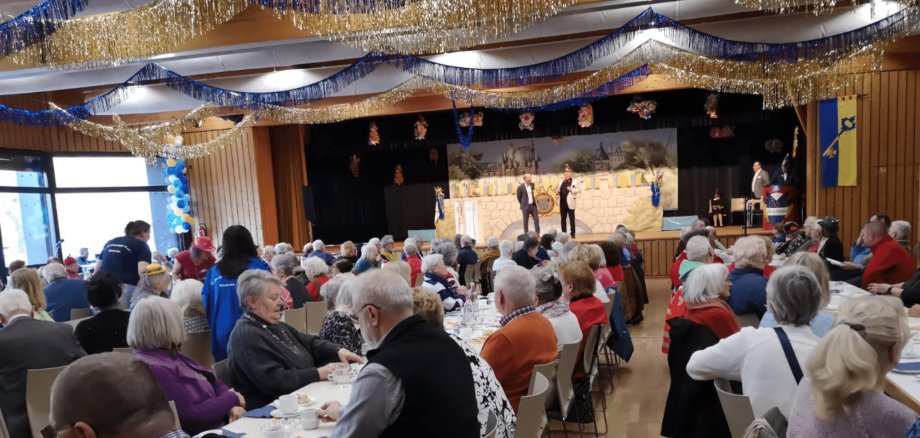 Die Stadt Nidderau hatte zum Fasching eingeladen und rund 200 Seniorinnen und Senioren folgten dank kostenlosem Bus-Shuttle-Service der Einladung in die Willi-Salzmann-Halle. Das neue Format des Babbel-Kräppel-Nachmittages kam sehr gut an.