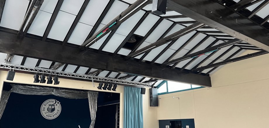 Bereits Ende 2022 führte eine Fachfirma eine Nachhallmessung in der Mehrzweckhalle mit dem Ergebnis durch, dass durch eine Verkleidung der überwiegend schallharten Materialien die Sprachverständlichkeit und das gesamte akustische Raumklima im Saal deutlich verbessert und die DIN 18041 garantiert werden kann. Die Arbeiten führte mit der Tschuschke Schall-Schutz GmbH aus Friedberg eine Firma aus der Region aus. Um die Faschingssaison nicht zu beeinträchtigen, wurde die Montage erst nach Aschermittwoch durchgeführt und der Saal für eine Woche gesperrt.