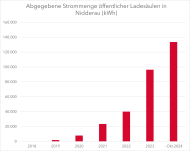 Derzeit gibt es 13 Ladesäulenstandorte (mit jeweils 1-4 öffentlichen Ladepunkten) von 5 verschiedenen Anbietern in Nidderau. Die ersten Ladesäulen wurden 2018 installiert und seitdem steigt die Anzahl der Ladevorgänge stetig. In 2024 belieferten die öffentlichen Ladepunkte über 130.000 kWh Strom.